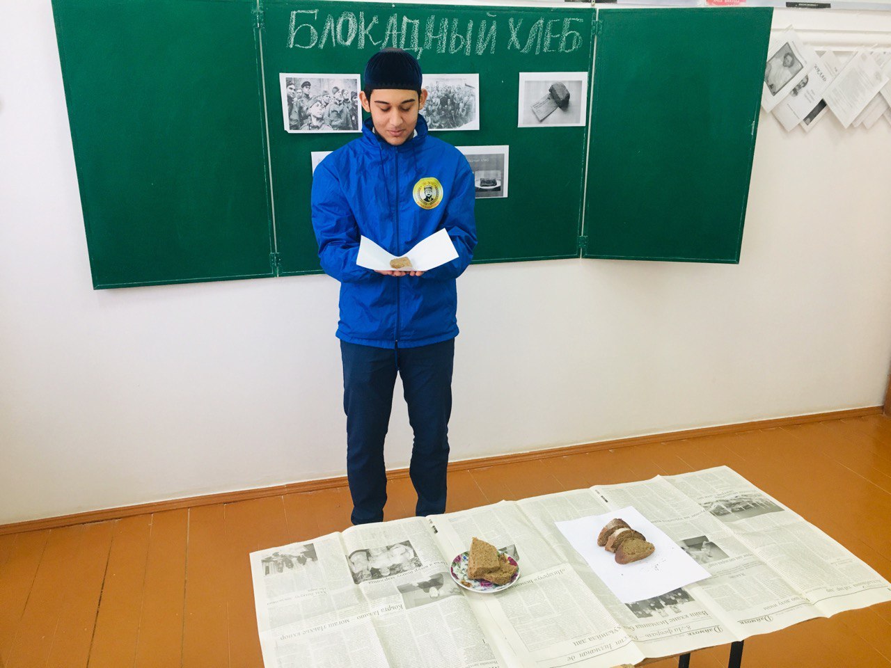 Ведущие- активисты отряда «Юные Кадыровцы» рассказали ребятам о тяжелых испытаниях, выпавших на долю жителей осажденного закрытого города Ленинграда: о голоде и холоде, о детях и женщинах, работавших наравне с мужчинами на заводах, о защите и обороне Ленинграда советскими солдатами.