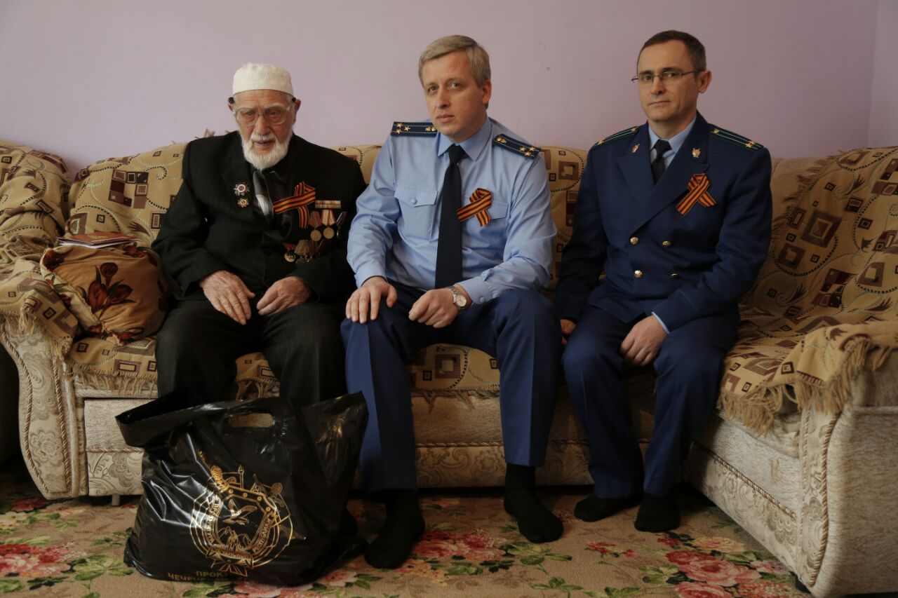 25.04.2017По поручению прокурора республики Шарпудди Абдул-Кадырова прокурором района Имраном Сербиевым и его заместителем Хасаном Магомадовым 25 апреля текущего года осуществлен выезд по месту жительства ветеранов Великой Отечественной войны Авсара Халилова и Владимира Атарщикова, проживающих в Наурском районе.