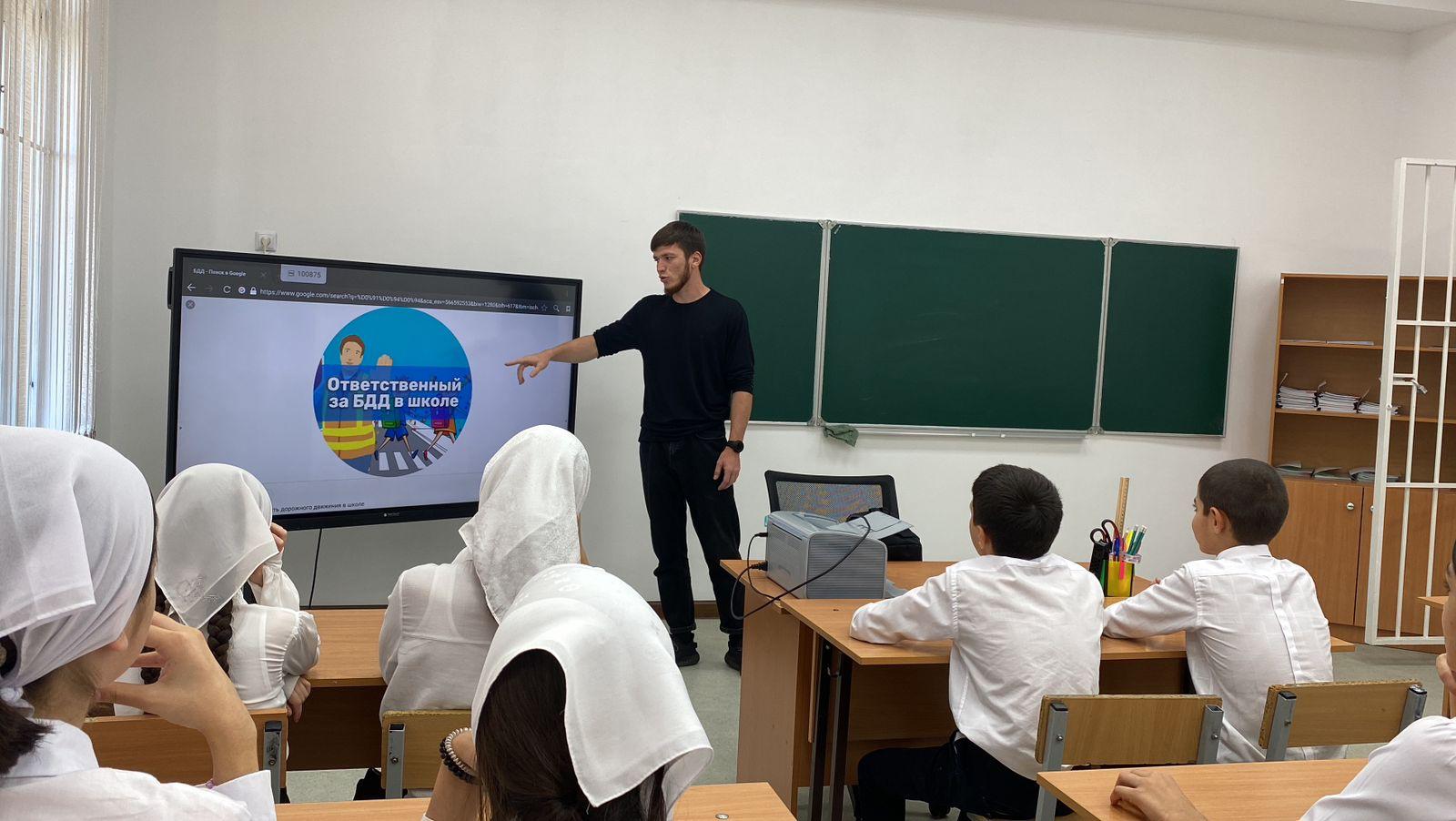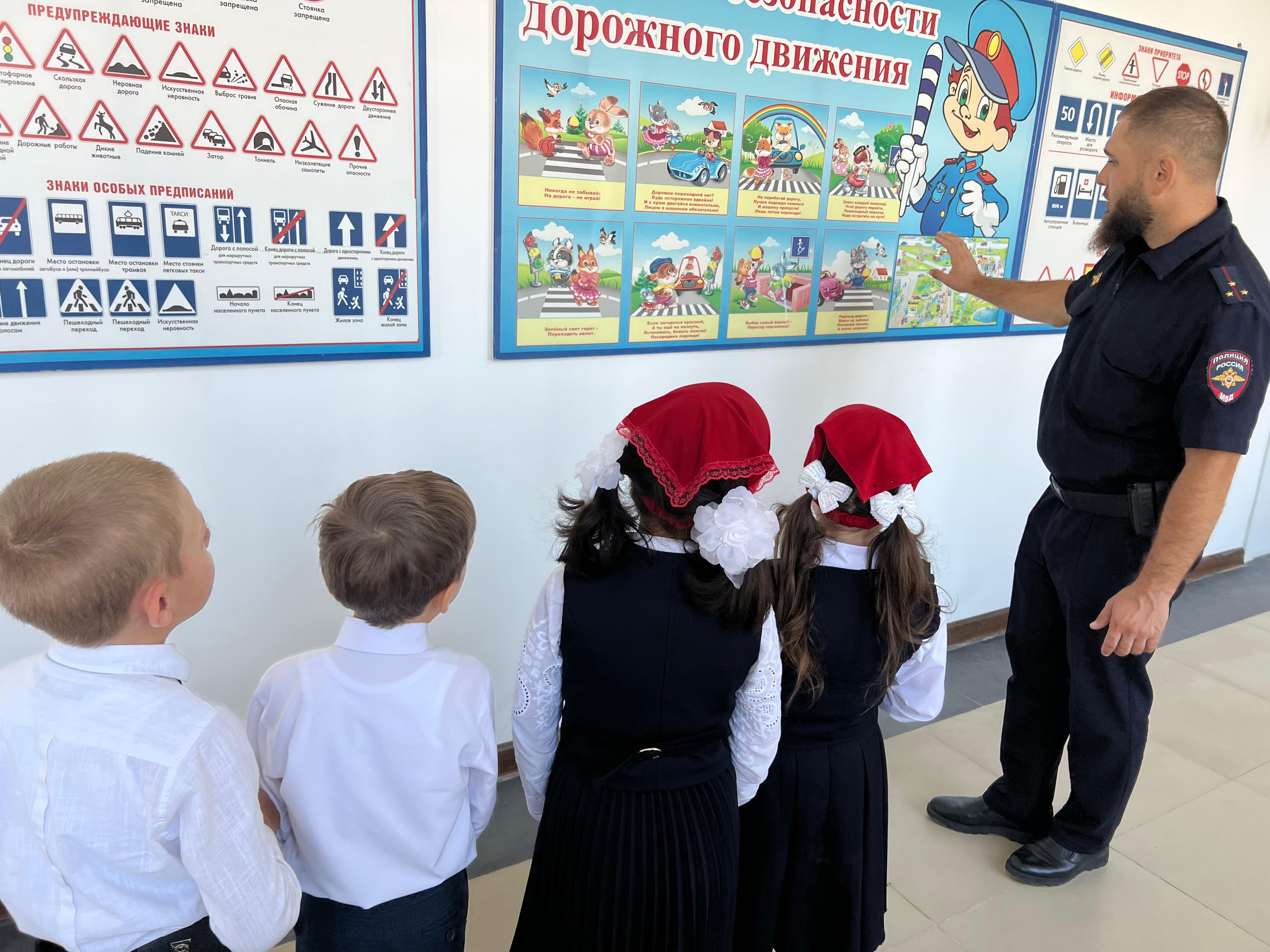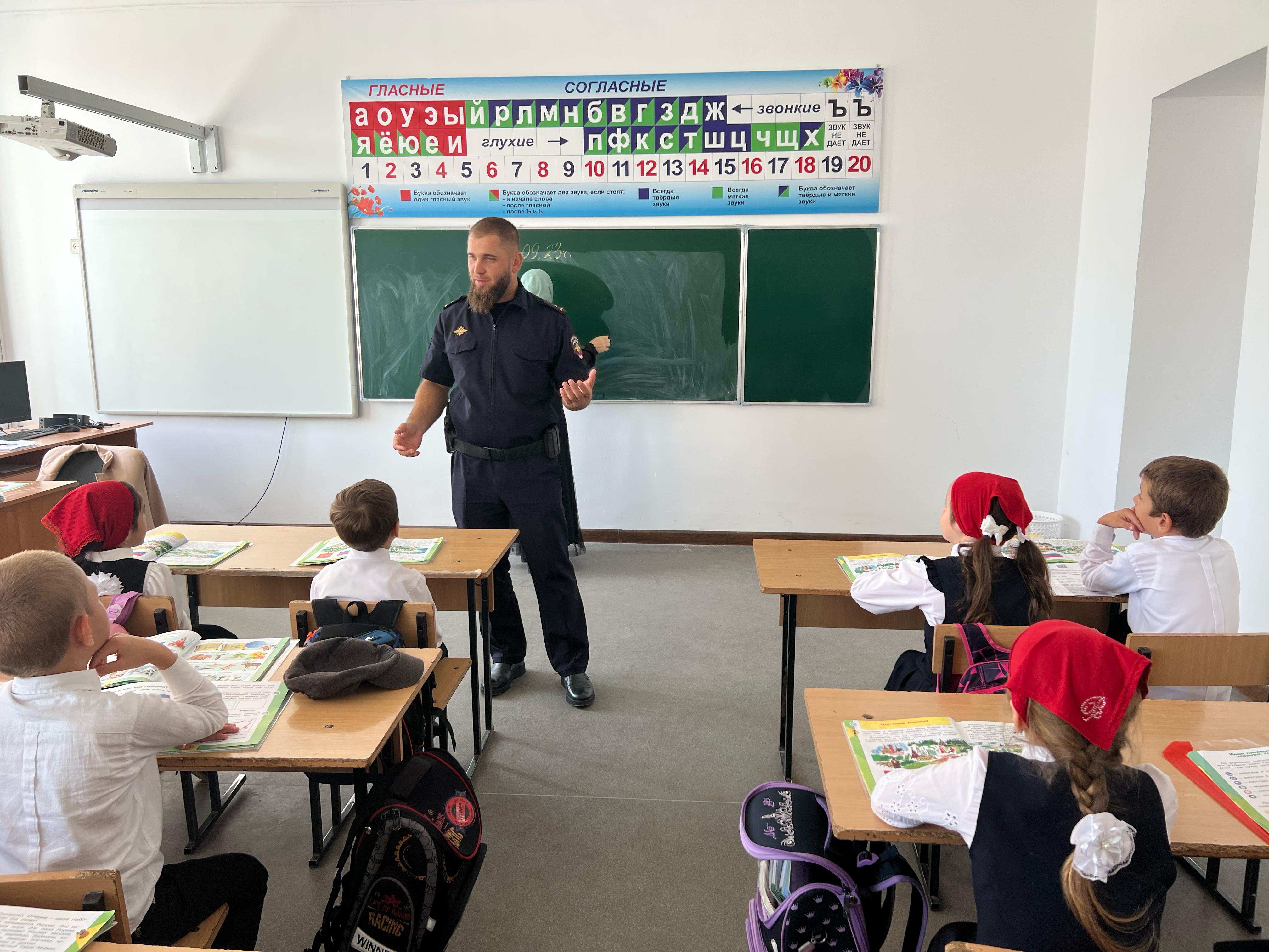 20.09 - беседа-инструктаж инспектора по пропаганде БДД ОГИБДД ОМВД России по Наурскому району ЧР, ст. лейтенанта полиции Бетербекова Х.И. с обучающимися 1-4х классов.