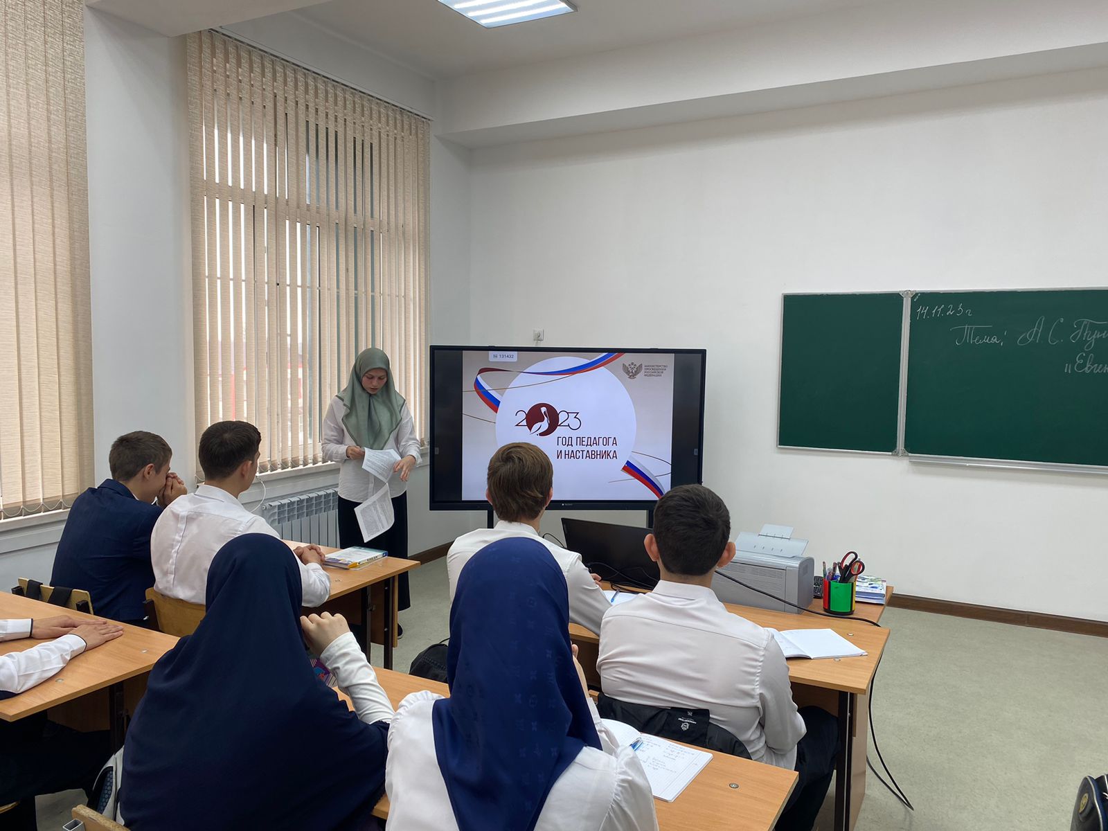 В рамках Года педагога и наставника 14 ноября 2023 г. в МБОУ «Наурская СОШ №3» в 9 классе прошел открытый урок по русской литературе на тему «Евгений Онегин»