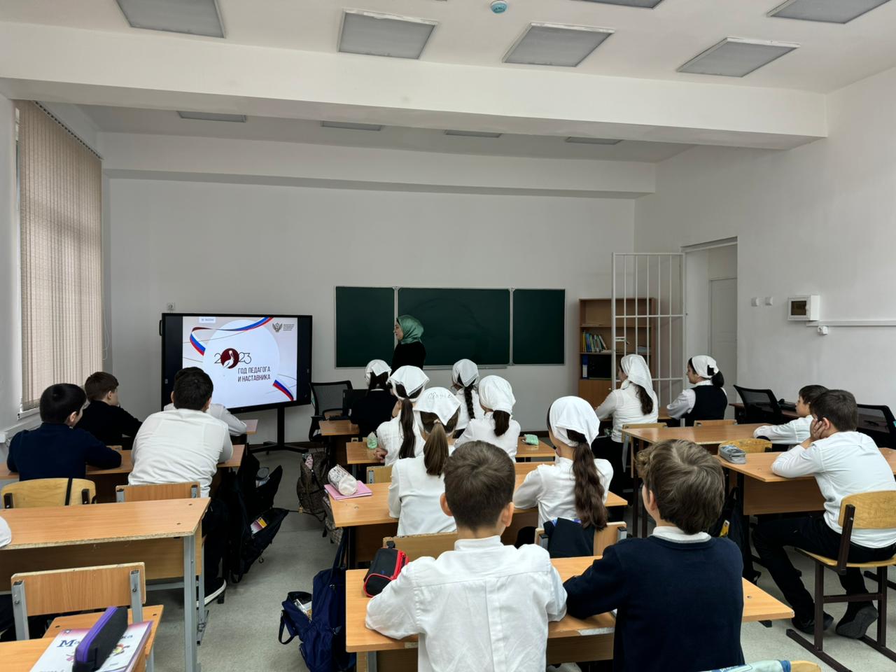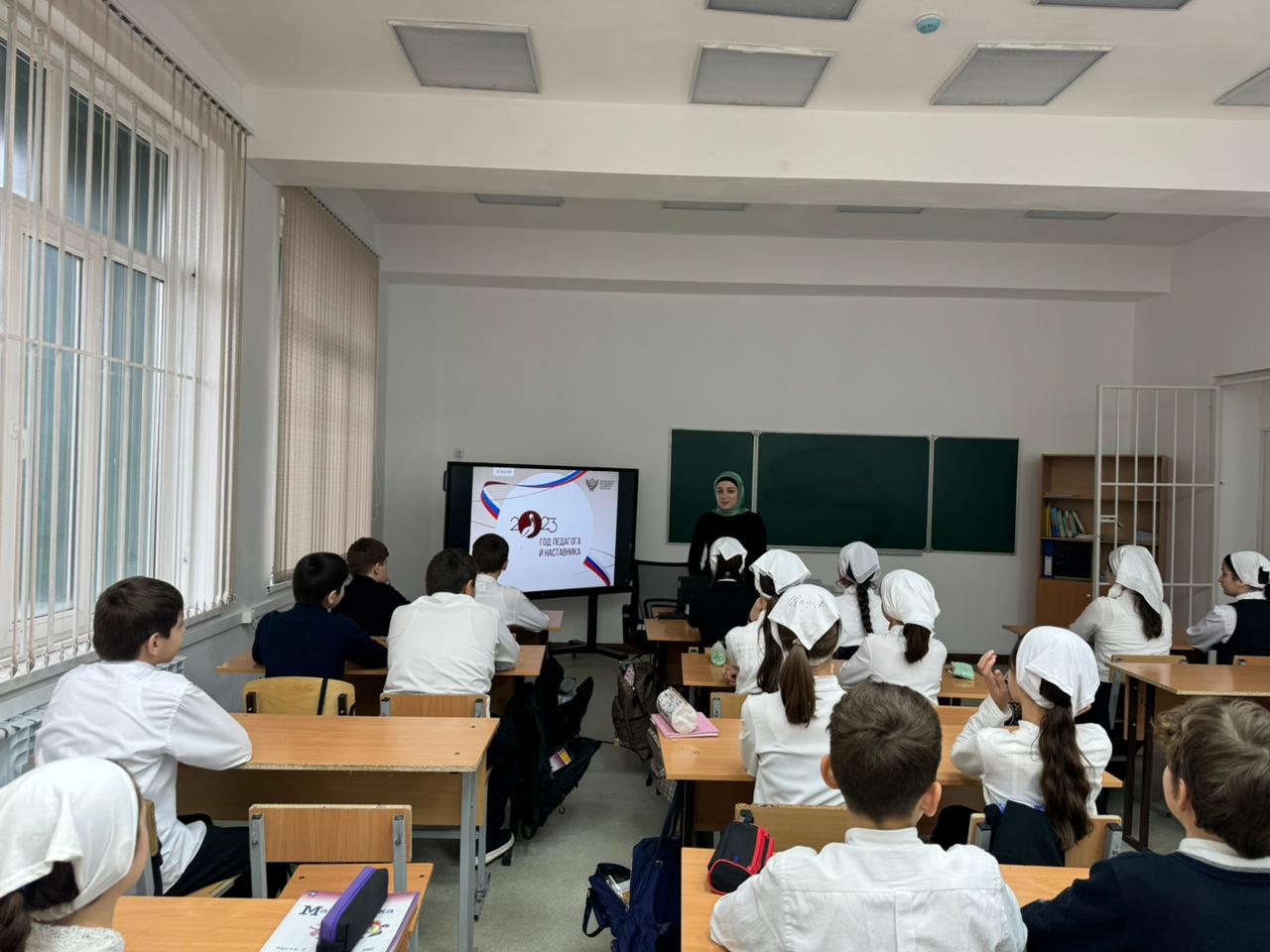 В рамках Года педагога и наставника 11.12.2023 г. в МБОУ «Наурская СОШ №3» учитель математики Хамидова М.М. в 5 «А» классе провела классный час на тему «День Конституции РФ».#ГПН-2023#