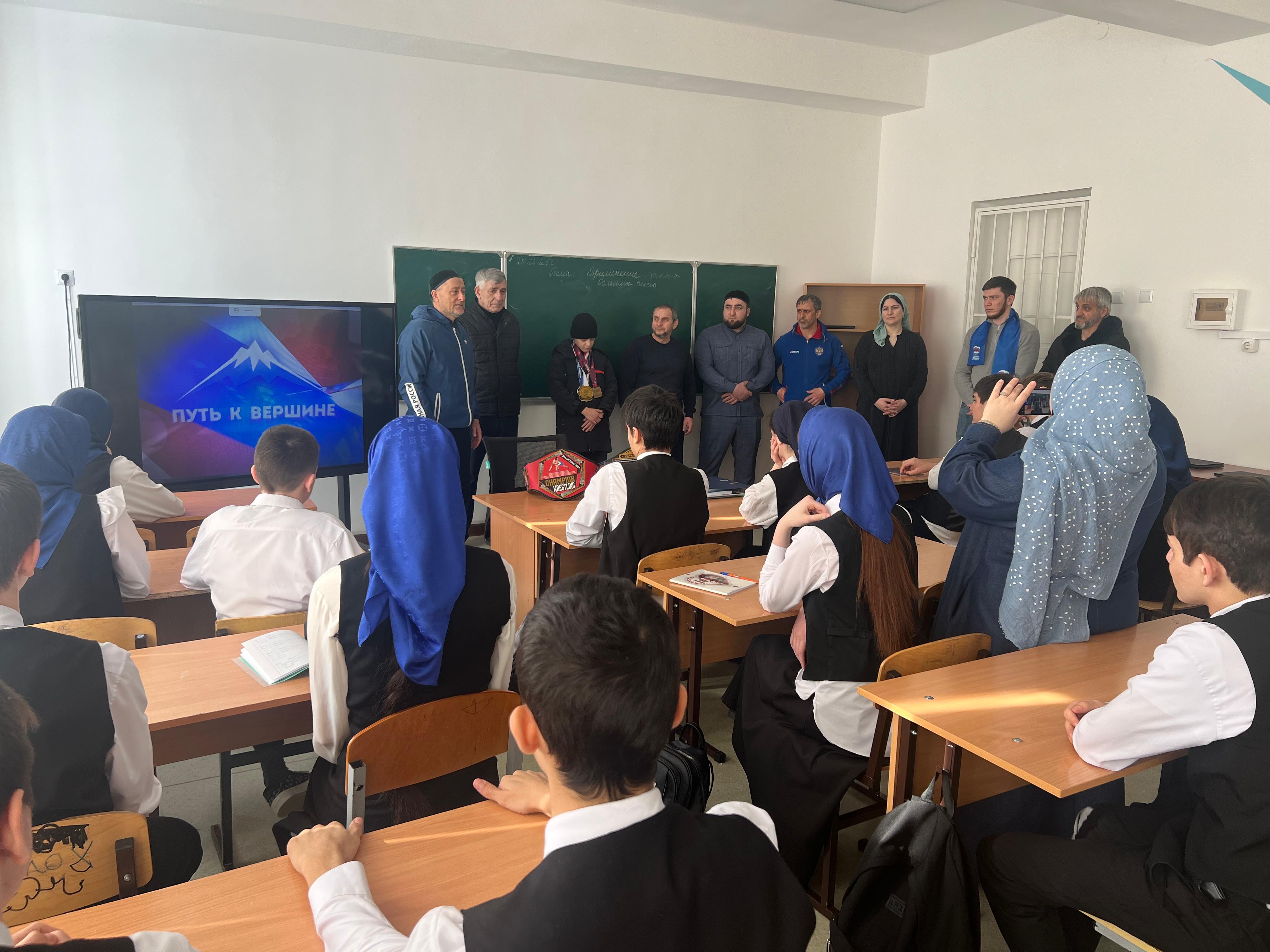 27.02.202527 февраля 2025 года в рамках реализации федерального партийного проекта «Детский спорт»партийцы Наурского местного отделения Партии "Единая Россия" и направления «Международный фестиваль спортивного кино» организовали в Наурской СОШ№3 показ фильма «Путь к вершине», рассказывающем о том насколько тернист путь к достижению спортивных высот, как спортсмен преодолевая препятствия, закаляя характер, через спорт становится настоящим человеком. Перед просмотром фильма перед школьниками выступили Расул Алиев, депутат Совета депутатов Наурского муниципального района (фракция "Единая Россия"); Рамазан Кушаев, заместитель директора спортивной школы Олимпийского резерва греко-римской борьбы имени Ислама Дугучиева; Исполнительный секретарь Наурского местного отделения Партии «Единая Россия» Абаз Муртазов; Рахман Гулаев, мастер спорта СССР, старший тренер юношеской сборной Чеченской Республики по греко-римской борьбе и директор СОШ№3 Марха Ирбиева. Также победитель Первенства Европы по греко-римской борьбе 2024 года, неоднократный чемпион международных юношеских турниров Инал Темирсултанов и его тренер, мастер спорта СССР Абдурашид Абдулаев поделились с ребятами тем, каким трудом достигаются такие вершины в спорте и пожелали школьникам достижения своих высот.