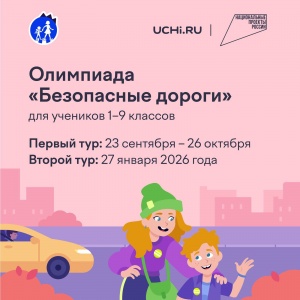 23.09.2025На Учи.ру 23 сентября — 26 октября для дошкольников и учеников 1–9 классов будет проводиться бесплатная всероссийская олимпиада «Безопасные дороги». Организаторами являются Минтранс России, ГУОБДД МВД России, Минпросвещения России, АНО «Национальные приоритеты», Учи.ру при поддержке национального проекта «Инфраструктура для жизни». Олимпиада входит в проект приказа перечня олимпиад Минпросвещения на 2025/26 учебный год. Соревнование направлено на: