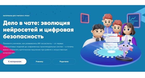 На уроке «Дело в чате: эволюция нейросетей и цифровая безопасность» школьники проследят за развитием технологий, на основе которых работают ИИ-ассистенты: узнают, как устроены языковые модели, что такое мультимодальные системы и RAG-подход и почему даже продвинутые нейросети иногда могут давать неточные ответы. Отдельная часть урока посвящена безопасному использованию технологий: дети узнают, что такое дипфейки, какие детали в видеозвонках или голосовых сообщениях должны насторожить и как лучше действовать в таких ситуациях. Они также разберутся, почему важно проверять источники и сохранять критическое мышление, даже если информация выглядит убедительн