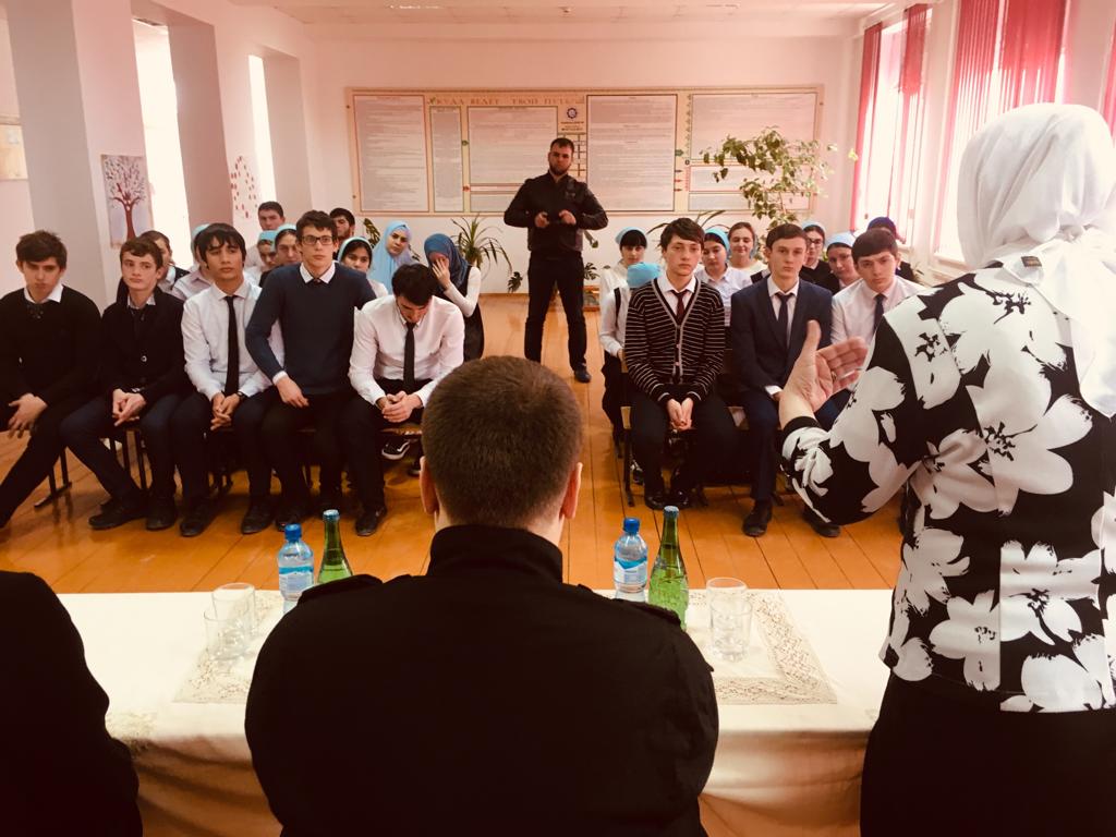 Ребята приняли активное участие в обсуждении данной проблемы, задали интересующие вопросы. Беседу провели: ст. лейтенант полиции межрайонного отд. #1 УНК МВД по ЧР Джанхотов У. Х., куратор школы Ибакова З.Г., и.о.директора школы Ирбаиева М.М.